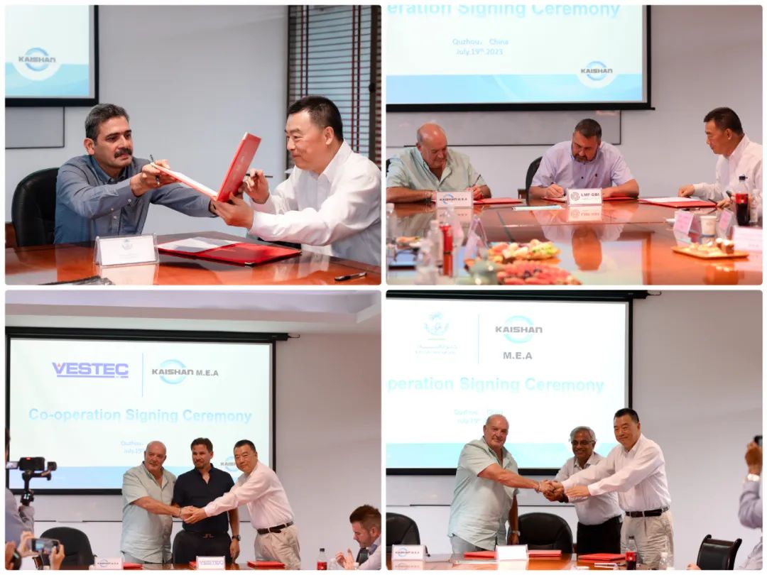 在開山控股集團有限公(gong)司(si)董(dong)事長曹克(ke)堅(jian)先(xian)生(sheng)的見證下(xia),Kaishan MEA CEO Mr.John Byrne分(fen)別(bie)與沙特(te)阿(a)拉(la)伯(bo)Kanoo公(gong)司(si)、阿(a)聯酋/巴林Kanoo公(gong)司(si)、挪(nuo)威Vestec公(gong)司(si)、愛爾(er)蘭LMF-GBI簽署了戰略合作儀(yi)式。