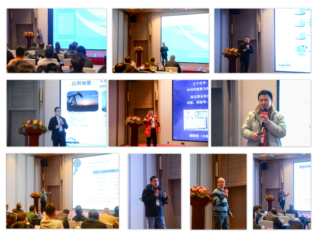 遠在海外的開(kai)山(shan)集團股份有限公司總(zong)經理湯炎博士百忙之中也抽出(chu)時間參(can)與(yu)(yu)了本(ben)次(ci)會(hui)議,并(bing)作(zuo)了“開(kai)山(shan)技術發展與(yu)(yu)趨勢”專題報告,著重介紹了開(kai)山(shan)無油螺(luo)桿空(kong)壓機的創新技術特征,最新一代超(chao)高效(xiao)壓縮機的測試數據,并(bing)宣布改寫(xie)我國空(kong)壓機能效(xiao)等級的產品(pin)即將(jiang)在2024年全面推(tui)出(chu)。