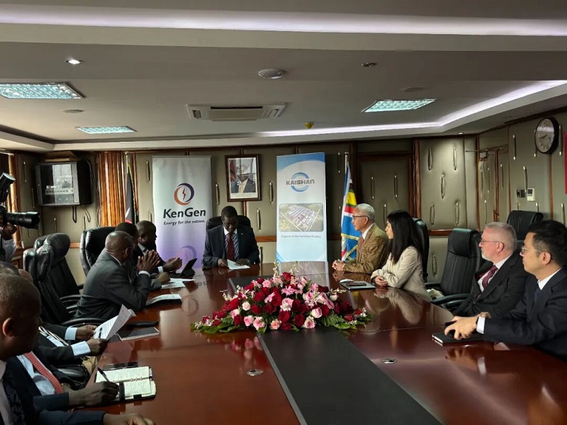 10月(yue)27日上午9時(shi),肯尼(ni)亞共和(he)國能源部。開山集(ji)團股份有限公司(si)董事(shi)總經(jing)理湯(tang)炎博士與KenGen總經理兼CEO Eng,Peter Njenga分別代(dai)表各(ge)自(zi)公司簽署了(le)《蒸汽供應協議》。肯(ken)尼亞共(gong)和國(guo)能源部長Hon,J.Opiyo Wandayi,EGH出(chu)席(xi)了(le)簽字(zi)儀(yi)式。