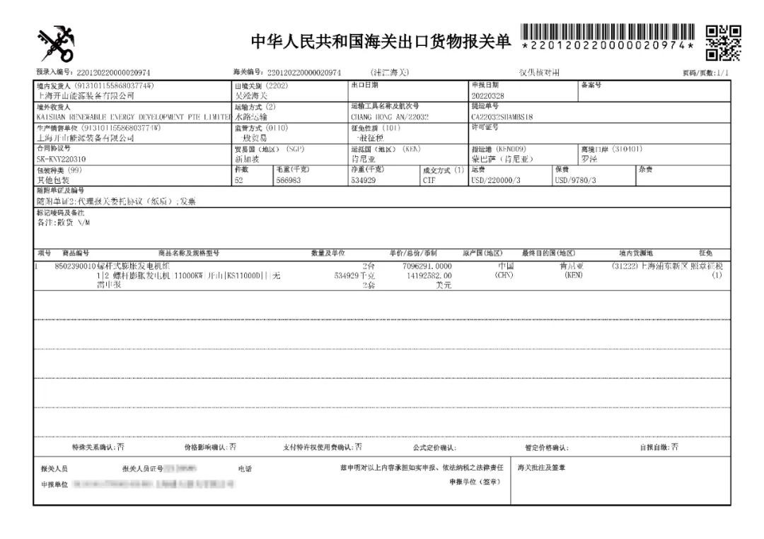 上(shang)周(zhou),肯(ken)尼亞(ya)Sosian地熱電站(zhan)兩臺螺桿(gan)蒸汽膨脹(zhang)發電機(ji)組啟運上(shang)海(hai)羅涇港(gang)。今天,完(wan)成海(hai)關報關作(zuo)業,不日就將裝船發運肯(ken)尼亞(ya)蒙巴薩港(gang)。